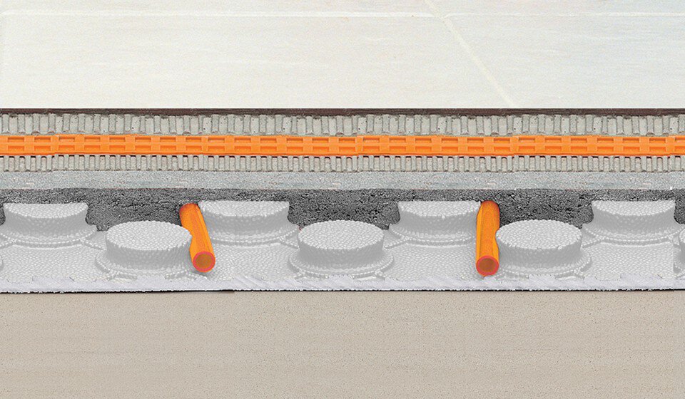 Schluter®-DILEX-DFPSchluter®-BEKOTEC is a modular screed system that produces permanent flooring assemblies that are free from internal stresses. The BEKOTEC system is based on a studded polystyrene screed panel. The studs confine curing stresses to small modules, which eliminates curling and allows the installation of continuous screed surfaces without any wire reinforcement or control joints. BEKOTEC is ideal for hydronic radiant heating applications, as it provides thermal insulation, allows for hydronic radiant tube application without fasteners, and reduces thermal mass to produce a responsive system that can operate at a low temperature range. The BEKOTEC system can also be used in conjunction with common sound insulation materials to produce a flooring system with excellent sound attenuation properties.