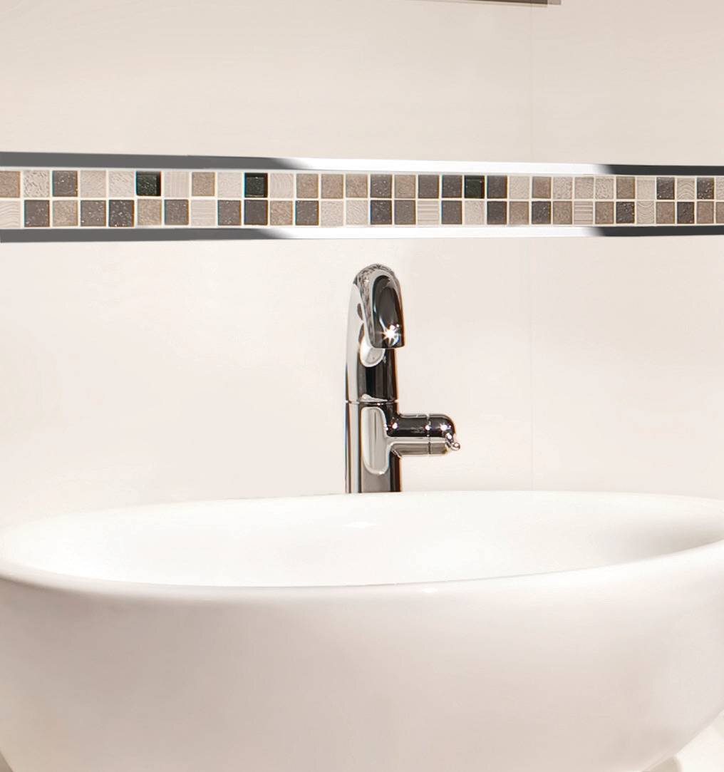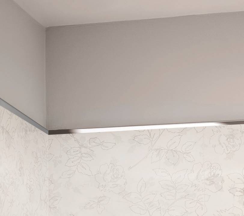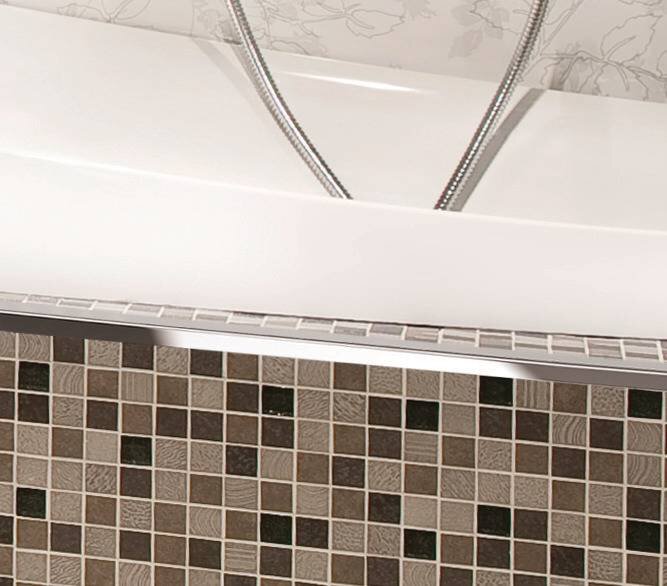 El perfil QUADEC-FS de doble carril sirve para enmarcar el inserto de mosaicos en la pared.