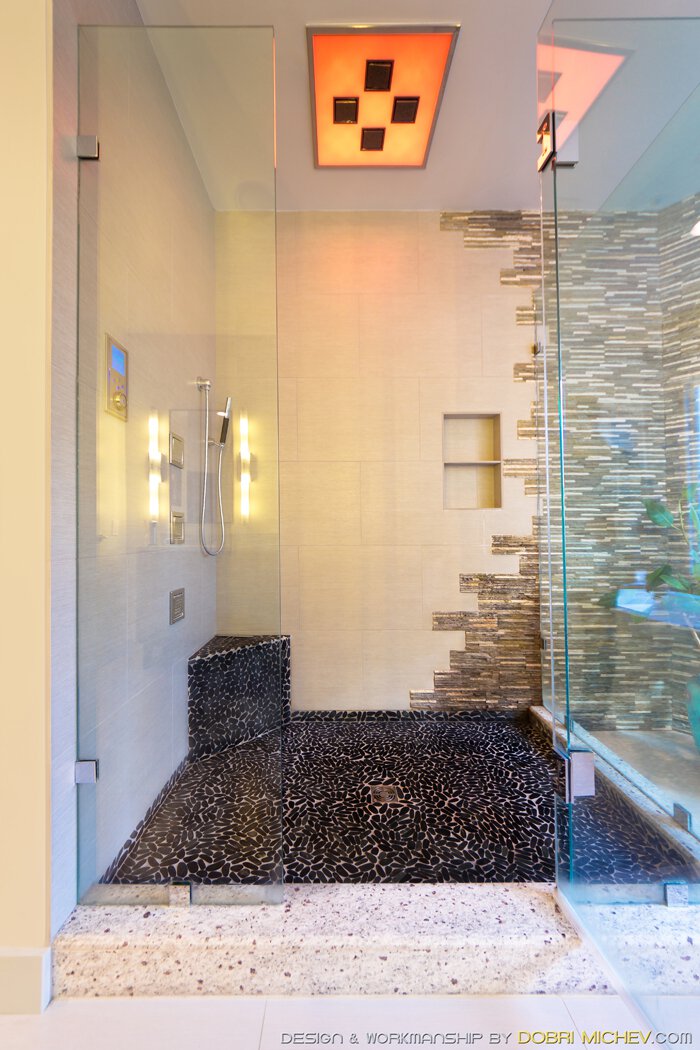 KERDI-SHOWER-SB se instala en esta ducha como banco de esquina para aprovechar al máximo el espacio. KERDI-FIX sujeta los elementos fijos sin comprometer la impermeabilidad.